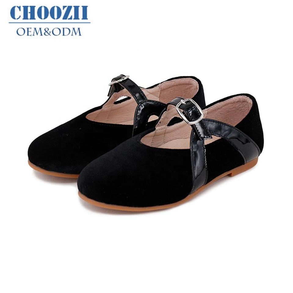 Choozii รองเท้าชุดเดรสเด็กผู้หญิง,รองเท้าแบบแบนสีดำกำมะหยี่หัวมนมีโบว์ดีไซน์ใหม่ปี2022