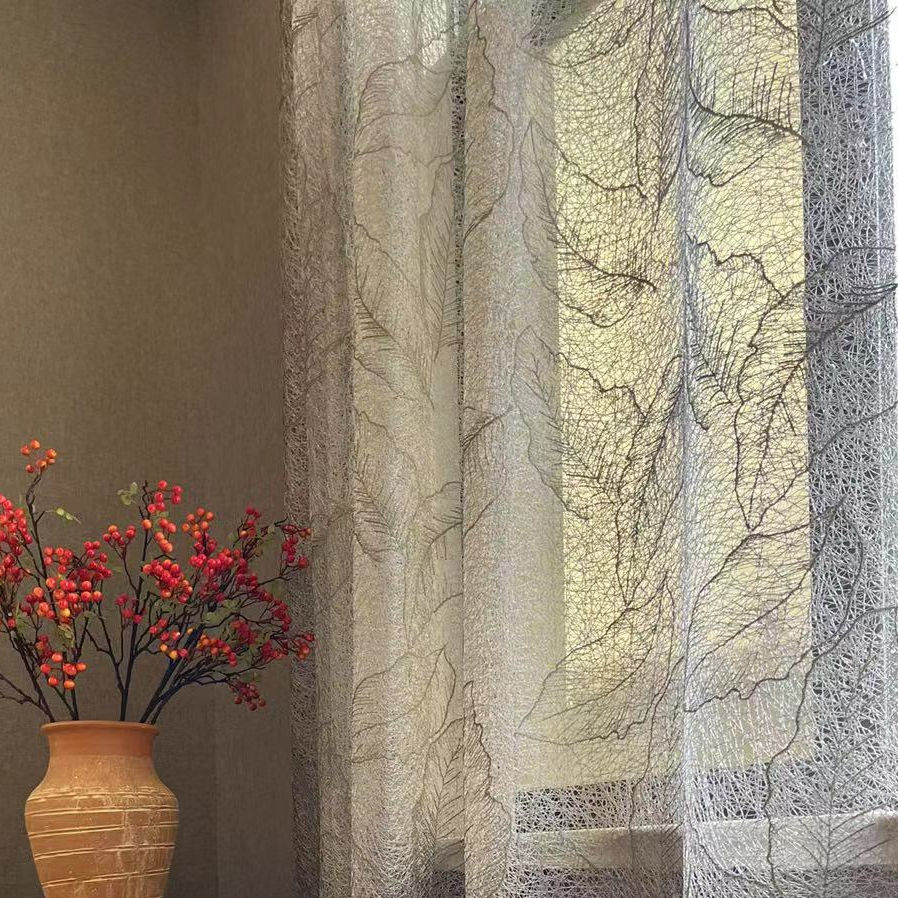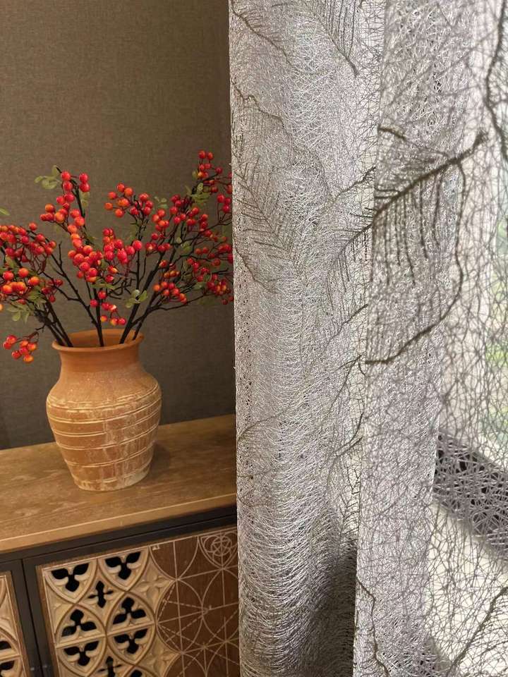 ผ้าเรยอน Jacquard ความแม่นยำสูงสำหรับผ้าม่านและเสื้อผ้า,ชุดเส้นด้ายรังนกใบไม้สีเทาหรูหราดีไซน์ใหม่ปี2022