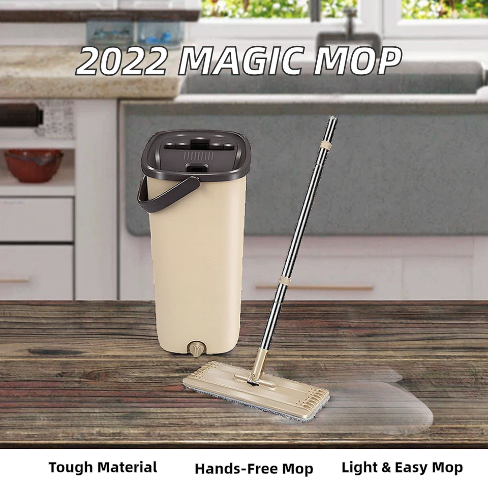ไม้ถูพื้นไมโครไฟเบอร์แบบแบน รุ่นปี 2022 ผลิตตามสั่ง ทนทาน พร้อมด้ามเหล็ก ถังซักแบบมีที่บีบน้ำในตัว ดีไซน์ทันสมัย ใช้งานง่าย ไม่ต้องใช้มือบีบ สำหรับใช้ในบ้าน