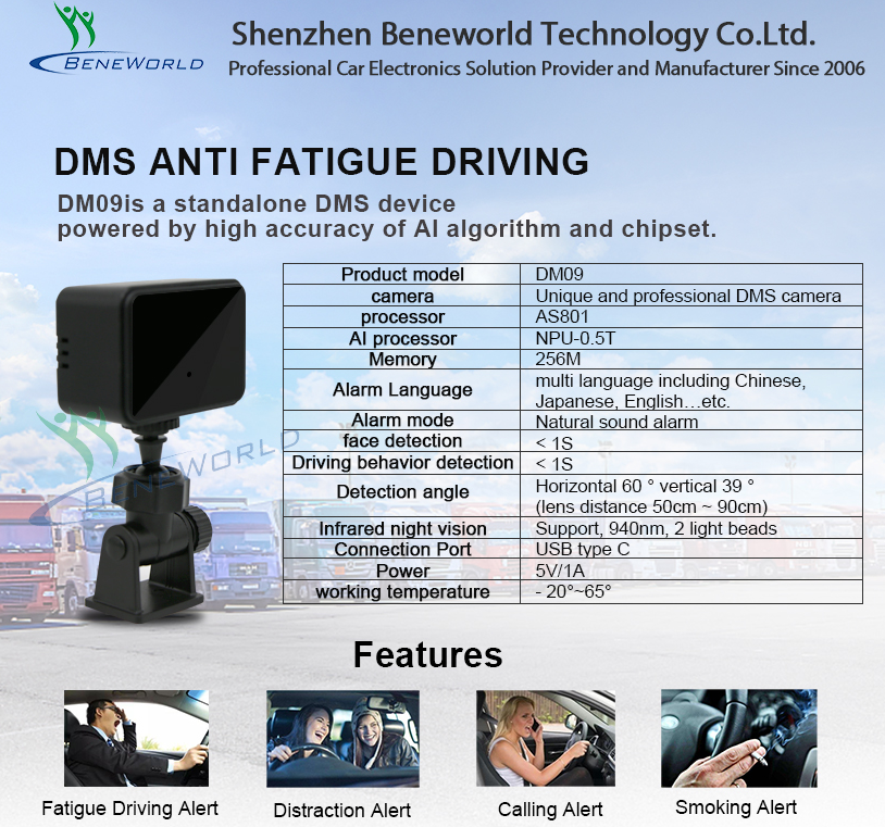 ชื่อผลิตภัณฑ์:ความเมื่อยล้า Sleep ง่วงนอนการตรวจจับกล้องระบบ
