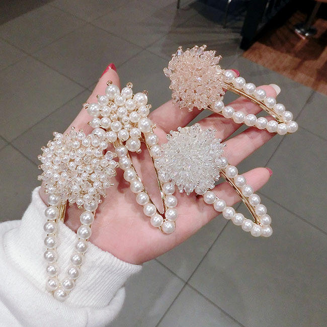 กิ๊บติดผมโลหะไข่มุกคริสตัลหรูหรา,กิ๊บติดผมแฟชั่นสไตล์เกาหลีสำหรับเด็กผู้หญิงปี2022