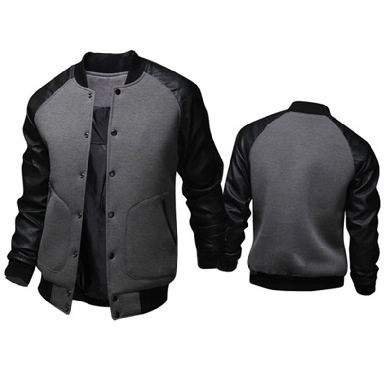 2022แฟชั่นใหม่ผู้ชายเสื้อบอมเบอร์ที่มีกระเป๋าขนาดใหญ่และแขนหนังผู้ชายแจ็คเก็ตเบสบอล