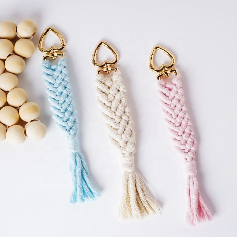 2022 Handmade Braided Cotton Rope Woven Tassel Boho Macrame Keychain Women Bag Decor Pendant