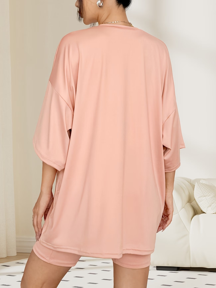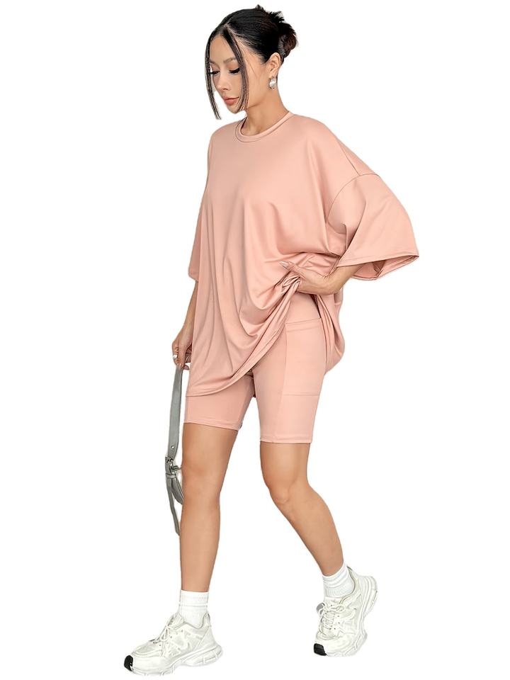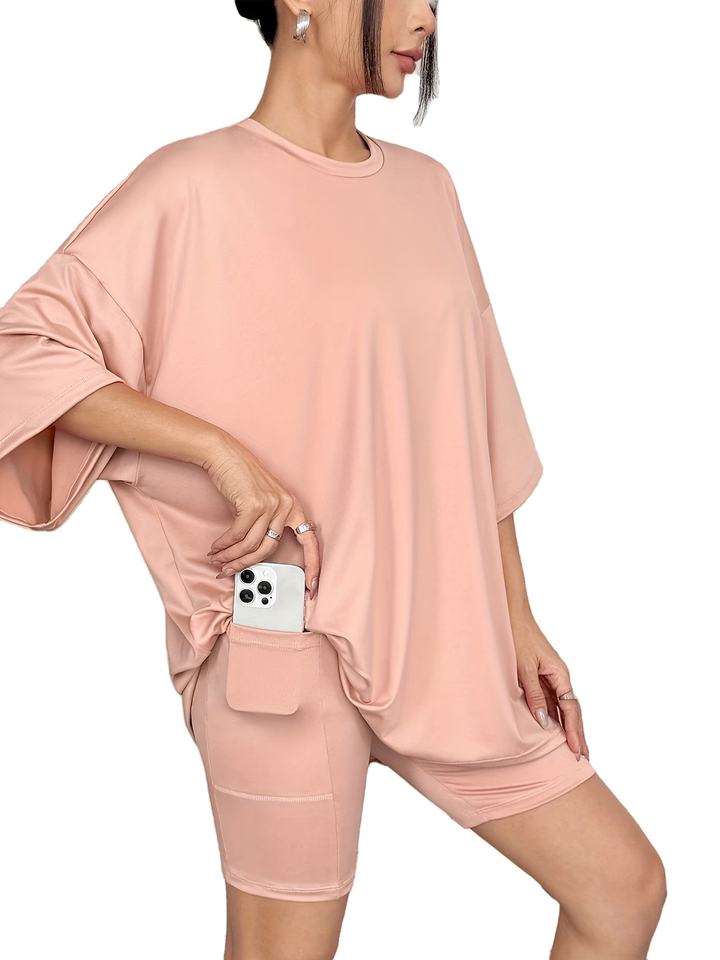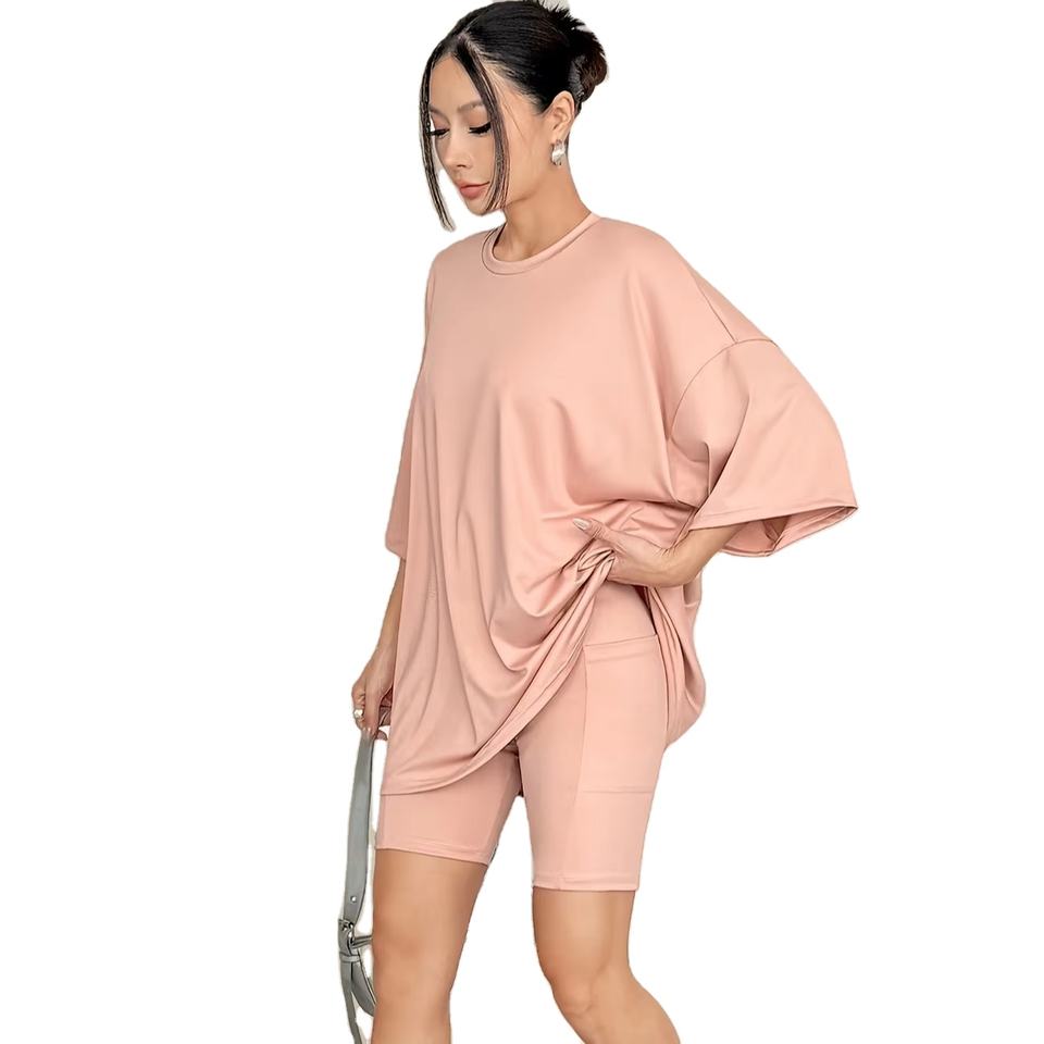 กางเกงขาสั้นยาวระดับเข่า มีกระเป๋าข้าง คอเสื้อหลวม แขนสั้น สวมใส่สบาย ชุดลำลองสำหรับเล่นกีฬาทุกวัน ผ้าฝ้าย 100% ระบายอากาศได้ดี