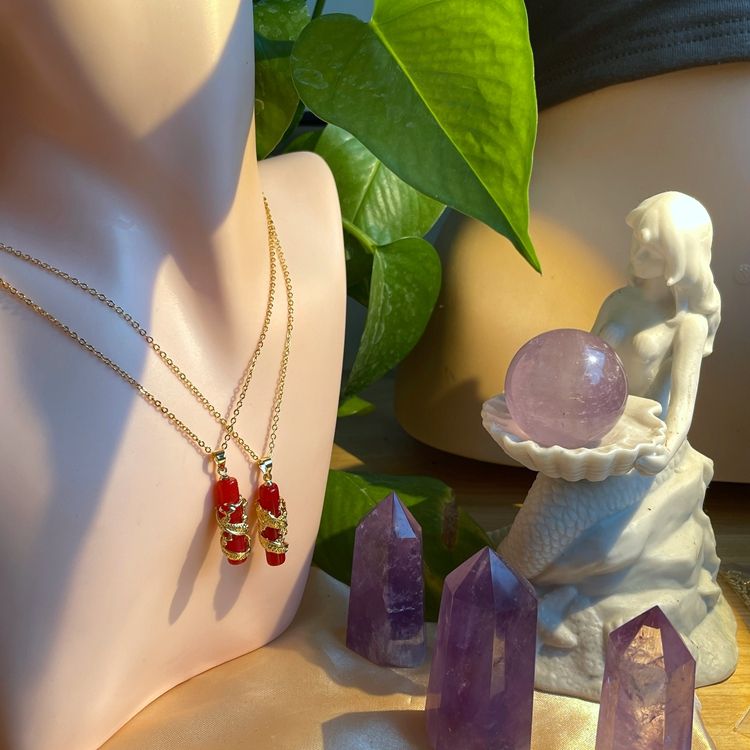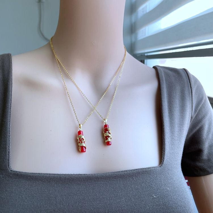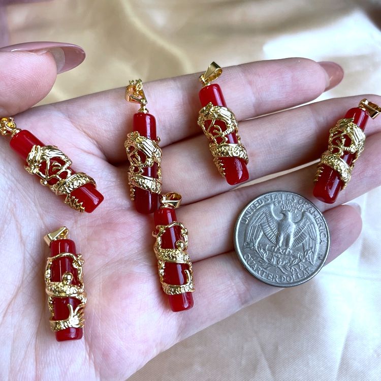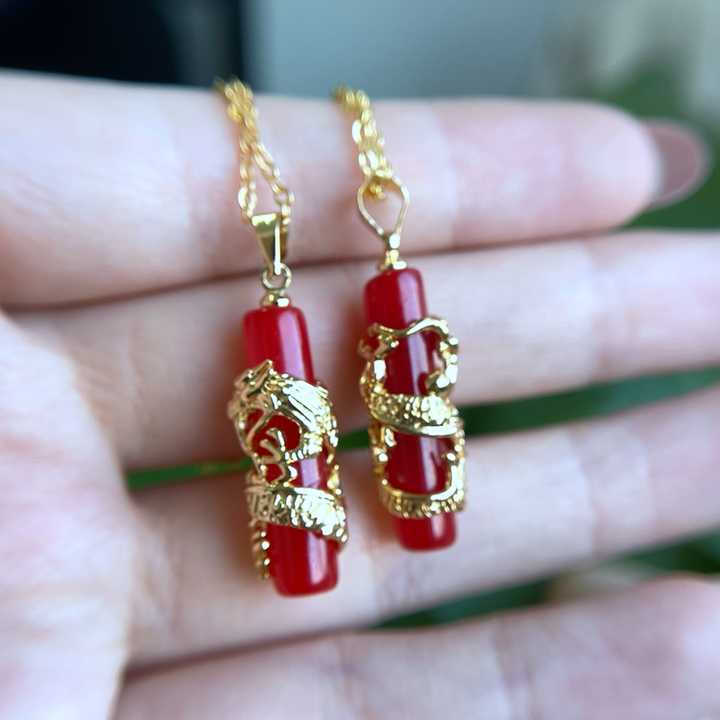 2022 Jialin 18k Gold Plated Natural Stone Chinese Red Jade Dragon Pendant Necklace