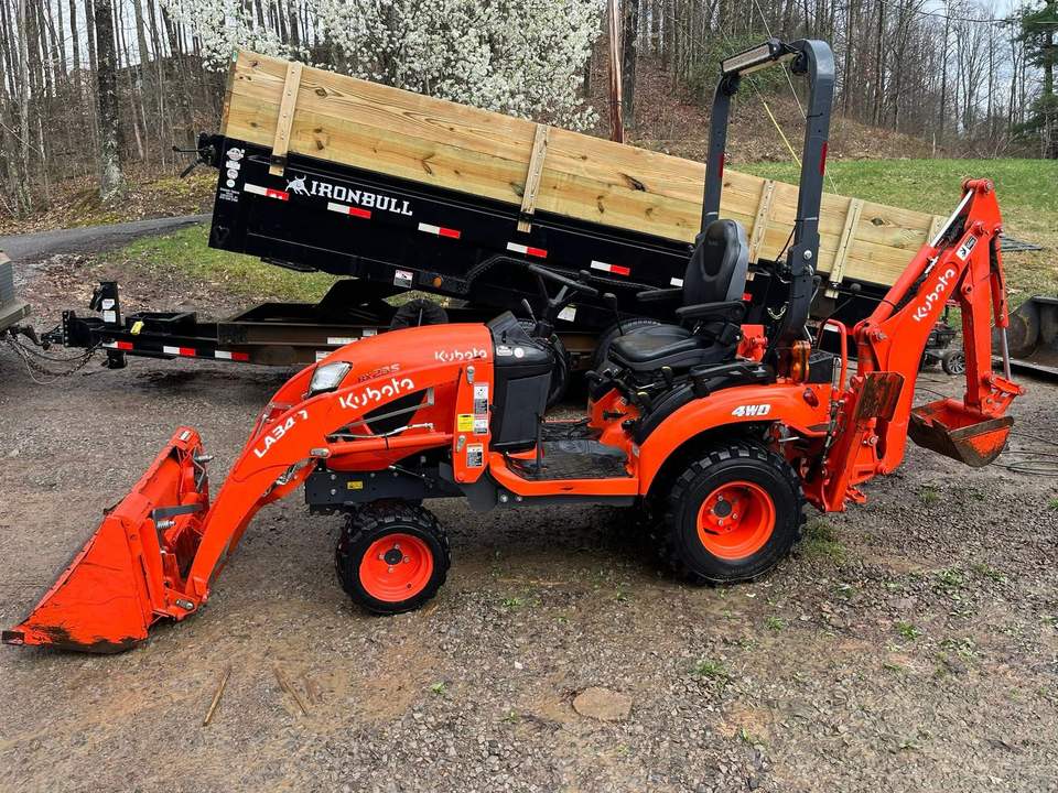 รถแทรกเตอร์ล้อยาง Kubota BX23S ปี 2022 เครื่องยนต์ดีเซล 23 แรงม้า ขับเคลื่อน 4 ล้อ พร้อมที่ตักดินและหลังขุด กำลังขับเคลื่อน 160 แรงม้า รวมชิ้นส่วนหลัก