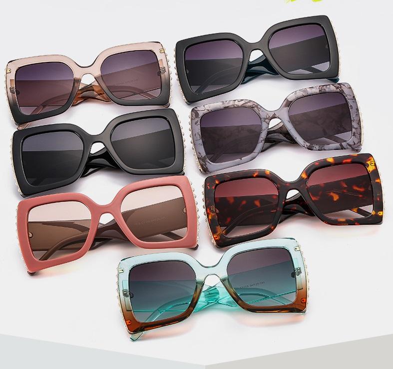 2022ขนาดใหญ่กรอบใหม่มุกแว่นกันแดดสุภาพสตรีแฟชั่นหรูหราย้อนยุคแว่นกันแดดขนาดใหญ่