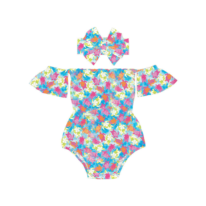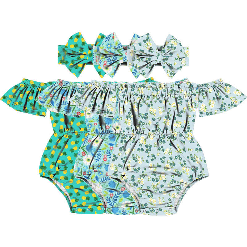 ชุดรอมเปอร์เด็กแรกเกิดสไตล์บูติกสุดฮิตปี 2022 แบบเปิดไหล่ พร้อมที่คาดผมโบว์