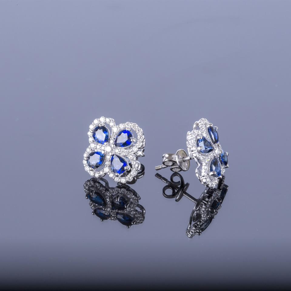 2022 Luxury 14K White Gold Plated Sapphire Earrings High Quality Fine Jewelry Timepiece Stud Gemstone for Party Gift for Women