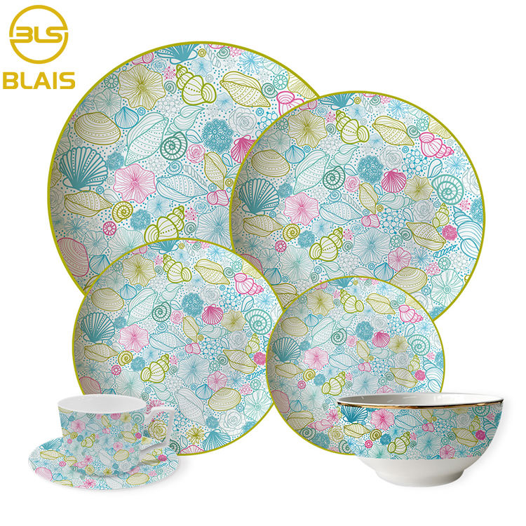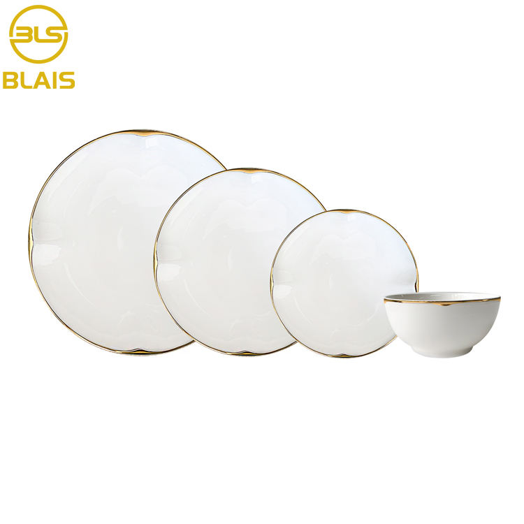 ชุดอาหารเย็นงานแต่งงานดอกไม้สุดหรู2022เครื่องถ้วยชามเซรามิกพอร์ซเลนพร้อมขอบทองสำหรับโรงแรมสำหรับงานแต่งงานและอาหารเย็น