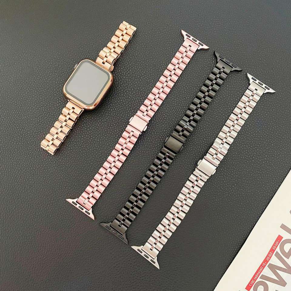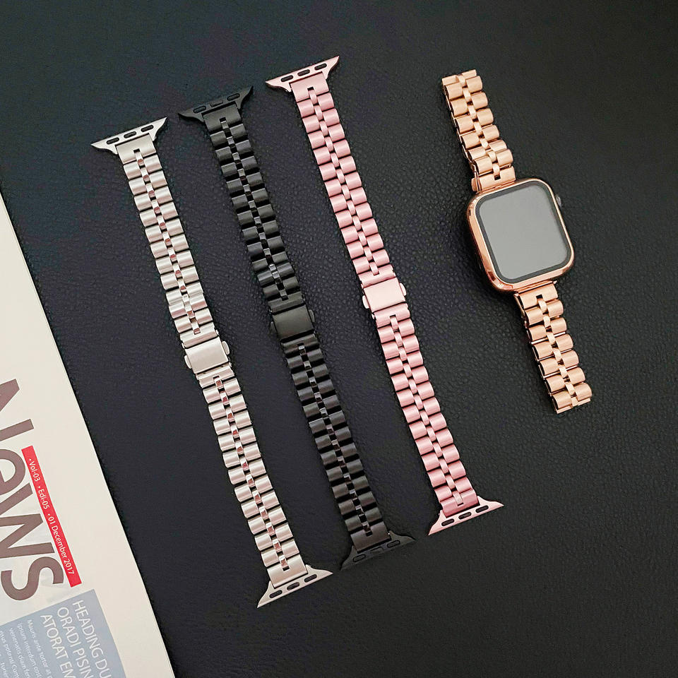 2022หรูหราสแตนเลสนาฬิกาสำหรับ Apple Watch7 6 5 4 3 2 Se สามเชื่อมโยงสร้อยข้อมือโลหะสายนาฬิกา