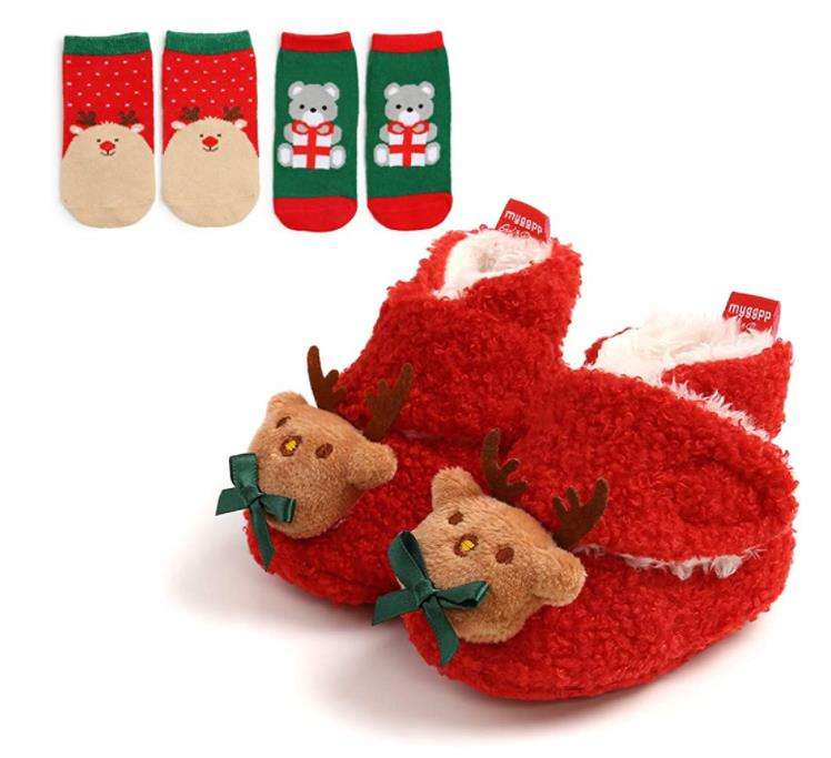 รองเท้าเด็กผ้าฝ้ายลายคริสต์มาสพ่อคริสต์มาส คอลเลคชั่นใหม่ปี 2022
