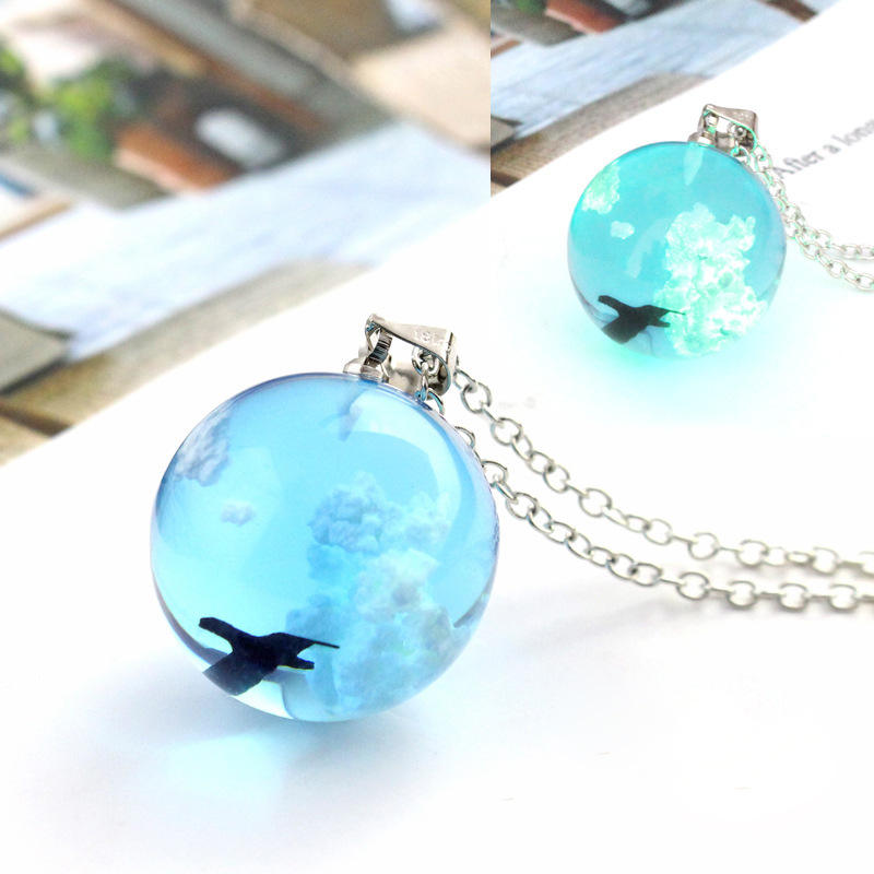 2022มาใหม่ Diy ของขวัญสร้างสรรค์บุคลิกภาพเครื่องประดับส่องสว่างสีฟ้าท้องฟ้าสีขาวเมฆสร้อยคอเรซินสำหรับผู้หญิง