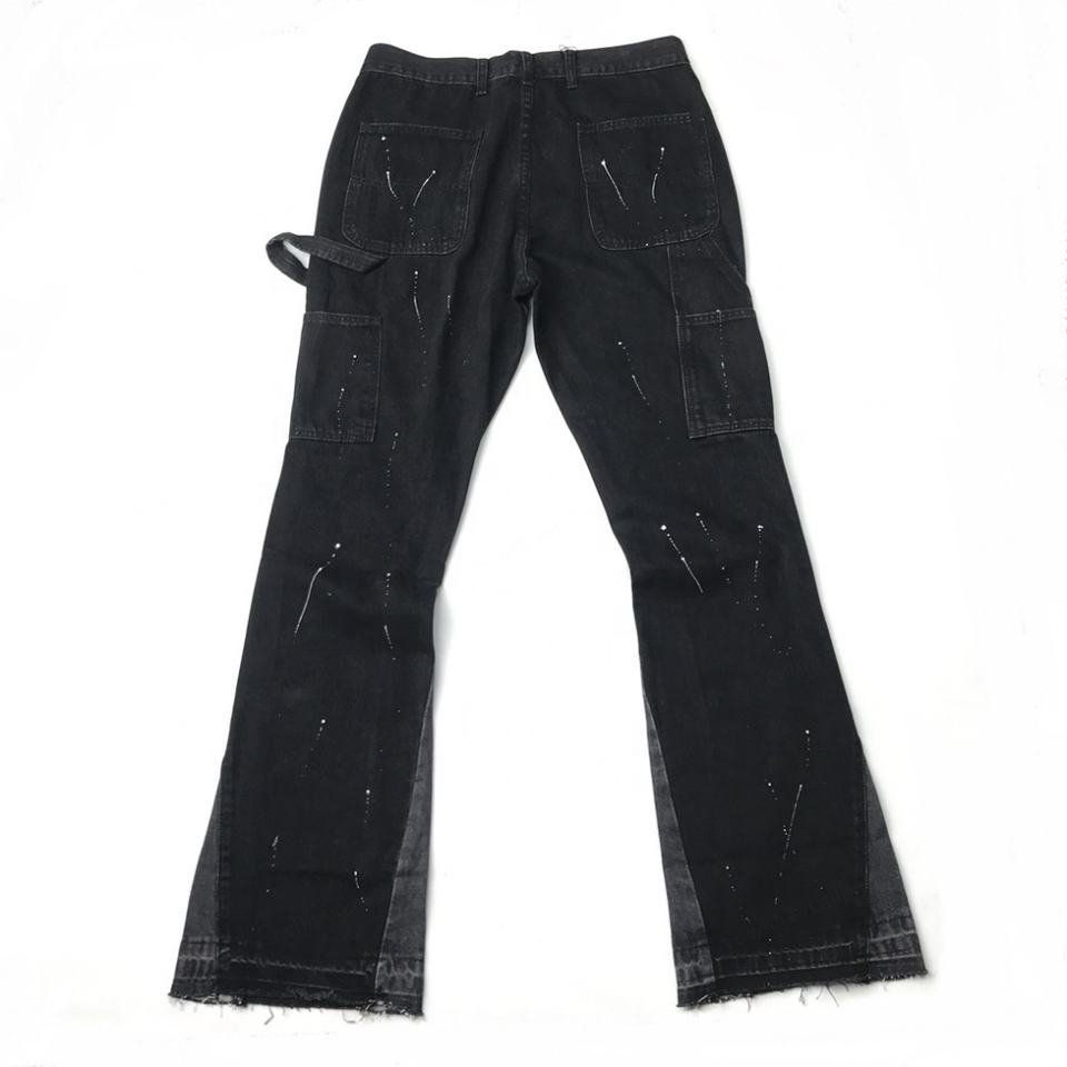 กางเกงยีนส์ทรงเดฟสีดำฟอกแบบสลิมฟิตสำหรับผู้ชายรุ่นใหม่ปี 2022 แต่งลายสาดสีหลากสีแบบดีคอนสตรัคชั่น พร้อมกระเป๋าแปดช่อง