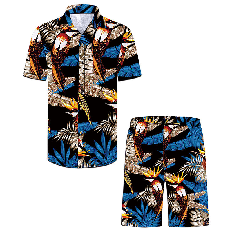 เสื้อฮิปฮอปยืดได้สำหรับผู้ชาย,กางเกงขาสั้น2ชิ้นพิมพ์ลายเสื้อชายหาดฮาวายใหม่ฤดูร้อนปี2022