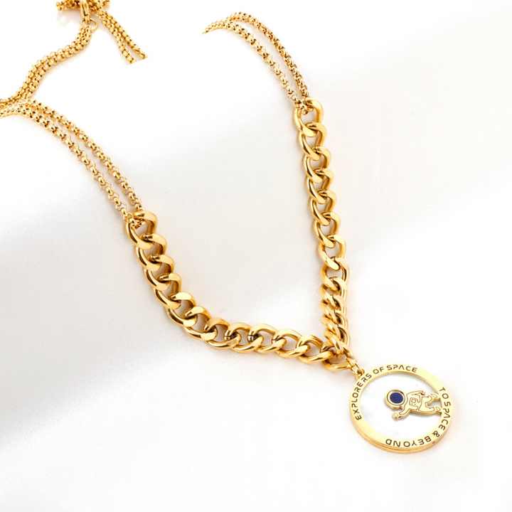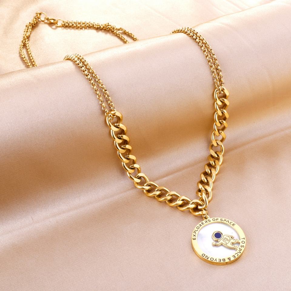 สร้อยคอจี้รูปนักบินอวกาศดีไซน์ใหม่ปี 2022 สุดฮิต โดดเด่นด้วยดีไซน์ทันสมัย ผลิตจากสแตนเลสสตีล ชุบทอง 18k