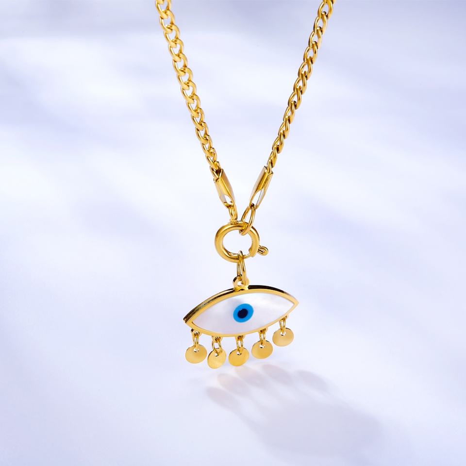 2022 New Design Blue Eyes Popular Jewelry Products Stainless Steel 18k Gold Plated Necklace