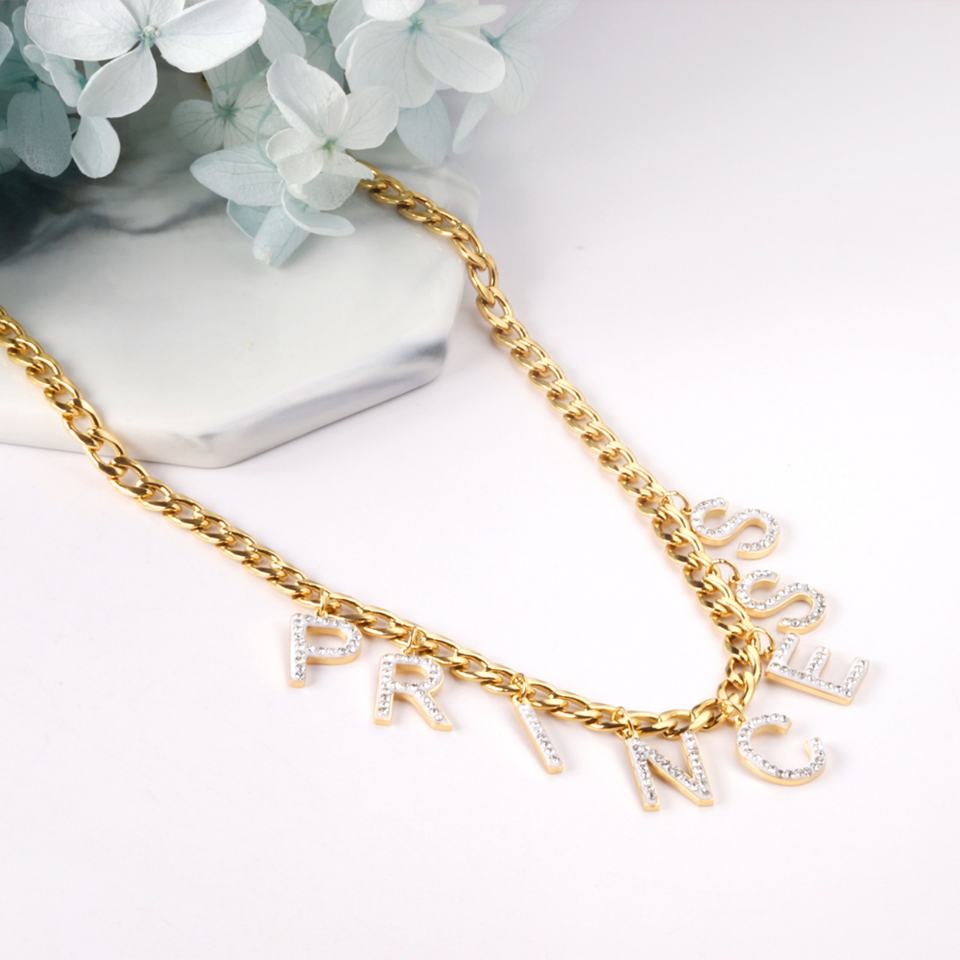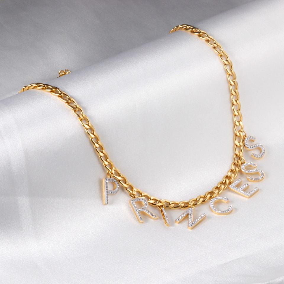 2022 New Design Cuban Chain Double Chain Princess Diamond Popular Cute Jewelry Stainless Steel 18K Gold Plated Pendant Necklace
