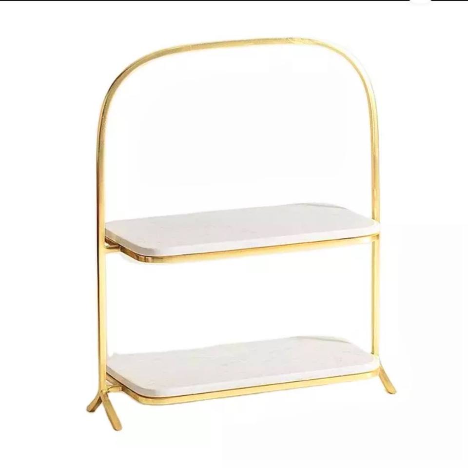 ขาตั้งเค้ก 2 ชั้น ดีไซน์ใหม่ปี 2022 ทำจากโลหะสีทองและหินอ่อน เป็นมิตรกับสิ่งแวดล้อม ขายส่ง อุปกรณ์ตกแต่งเค้กสำหรับงานปาร์ตี้และงานแต่งงาน