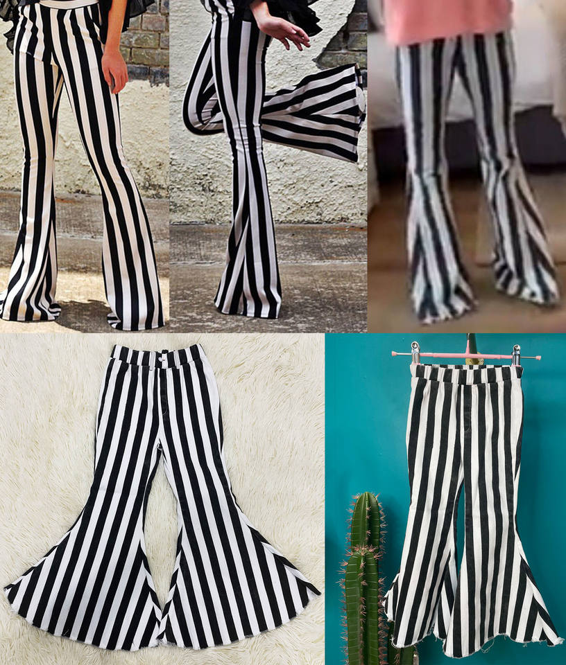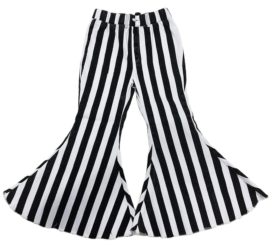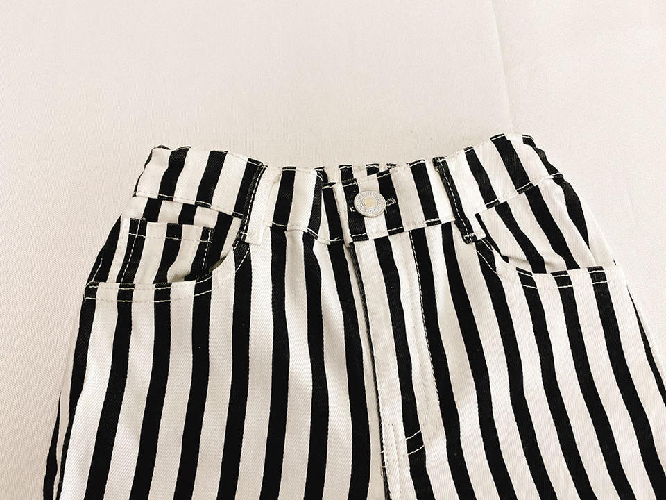 กางเกงยีนส์เด็กขาบานลายทางขาวดำ ดีไซน์ใหม่ปี 2022 ขายดี พร้อมยางยืดที่เอว