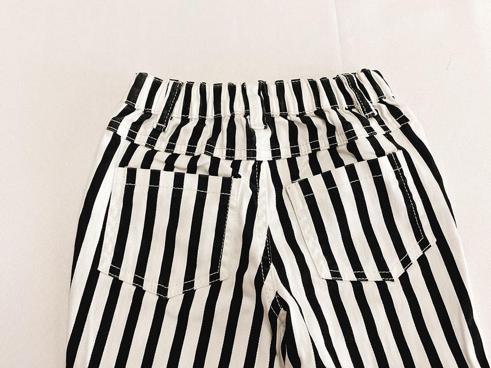 ชื่อผลิตภัณฑ์:กางเกงยีนส์เด็กทรงขาบานลายทาง เอวยางยืด