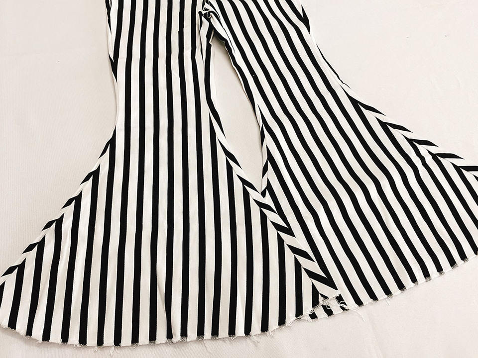 ชื่อผลิตภัณฑ์:กางเกงยีนส์เด็กขากระดิ่งลายทาง เอวยางยืด ทรงขาบาน