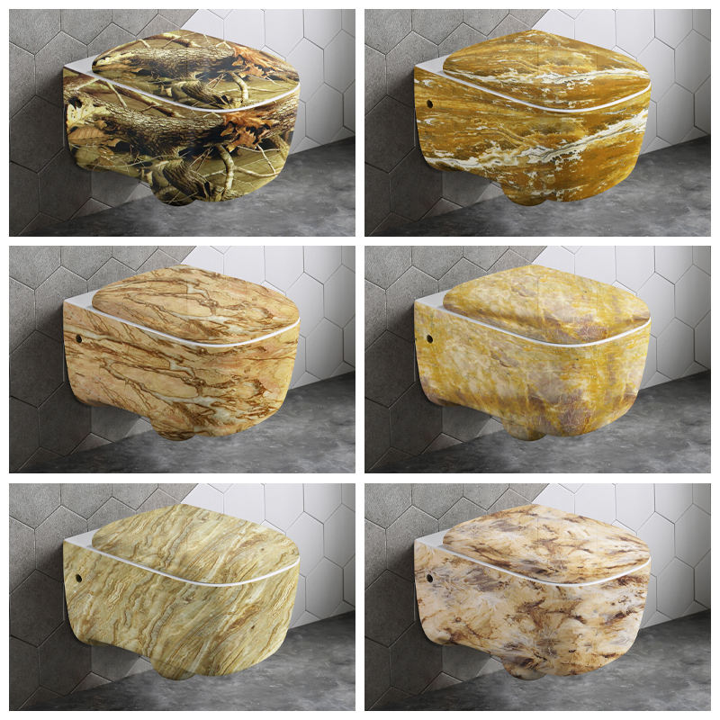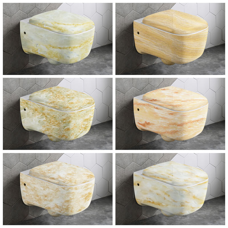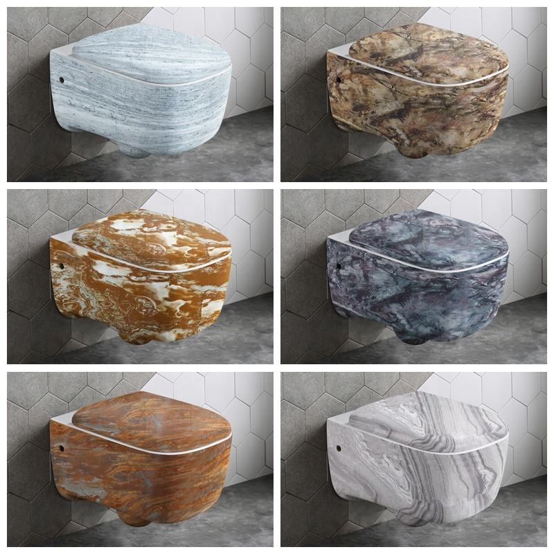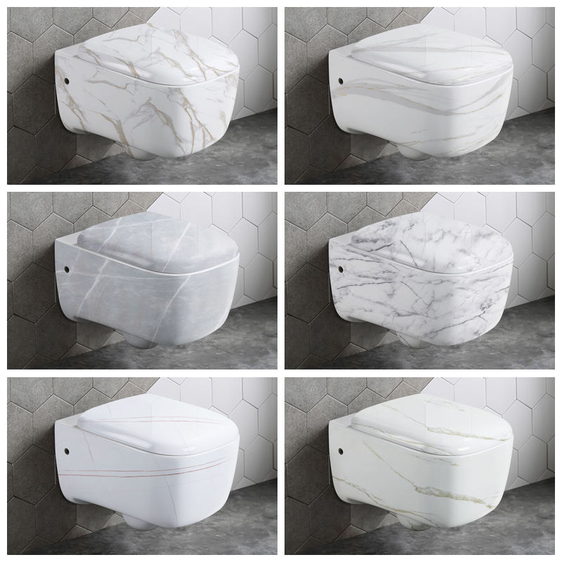 โถสุขภัณฑ์แบบแขวนผนัง ดีไซน์ใหม่ปี 2022 ฝารองนั่งแบบปิดนุ่มนวล ลายหินอ่อน