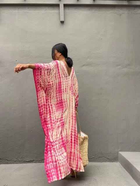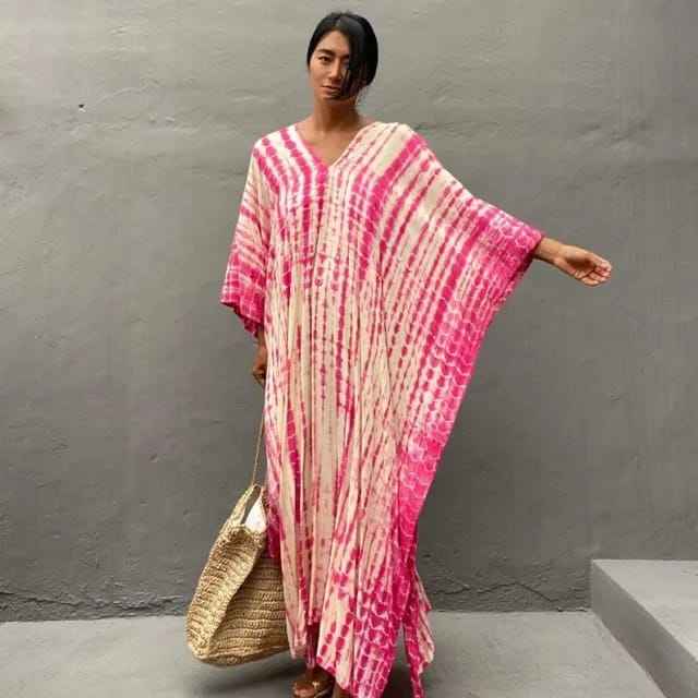 2022 New Hand Made Tie Dye Long Kaftan for Women Beach Wear Cover up Cotton Maxi Dress