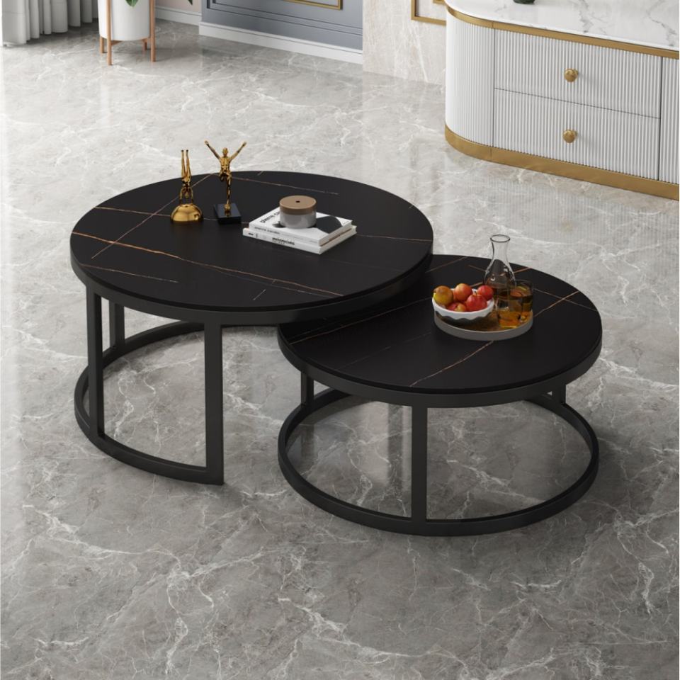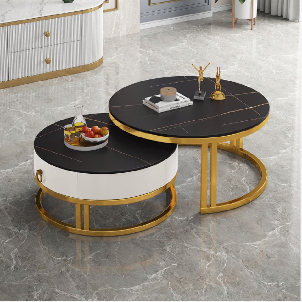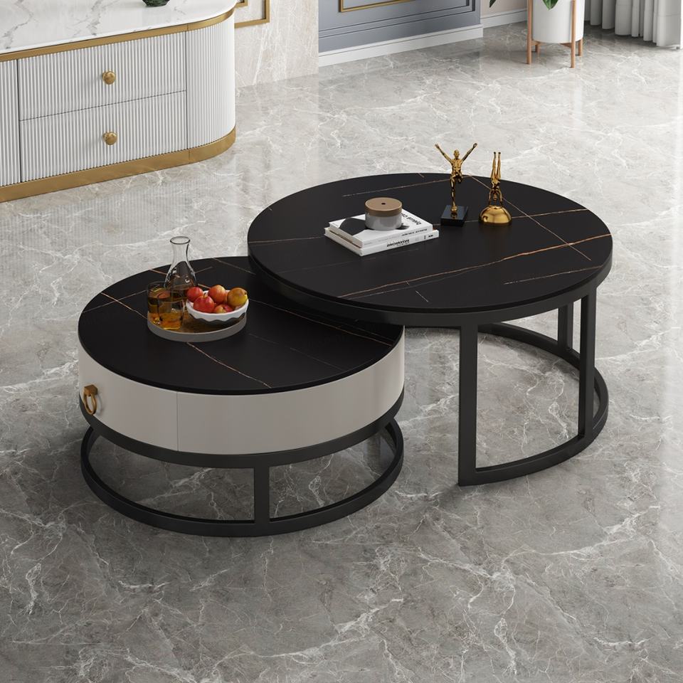 โต๊ะคอนโซลแบบโมดูลาร์ดีไซน์ใหม่มาแรงปี 2022 โต๊ะกลางทรงกลม โต๊ะกาแฟหินชนวนแบบขยายได้