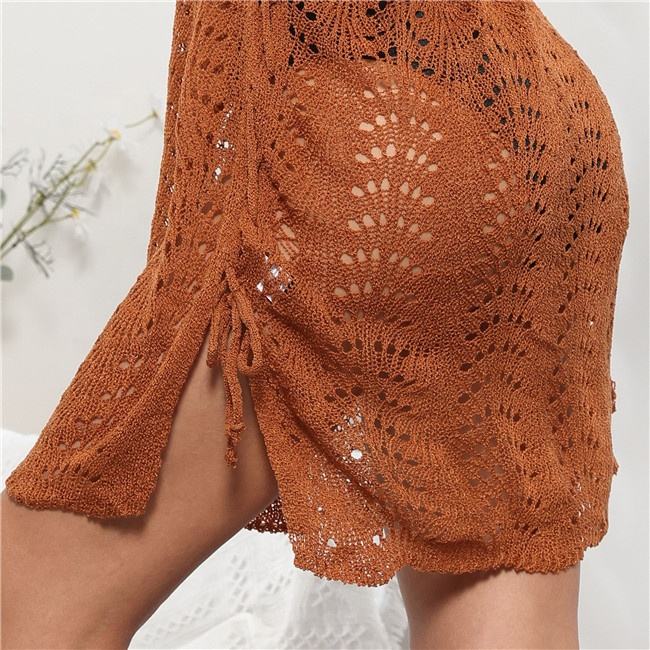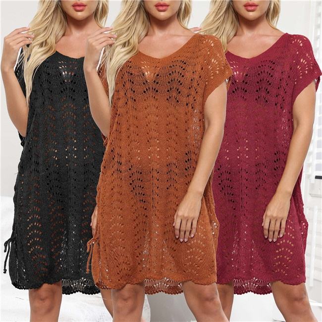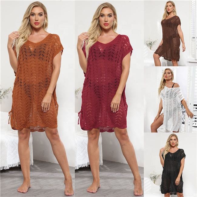 ชุดเดรสตาข่ายถักโครเชต์ฉลุลายสำหรับใส่เดินชายหาด,ผ้าถุงมี5สีใหม่ปี2022