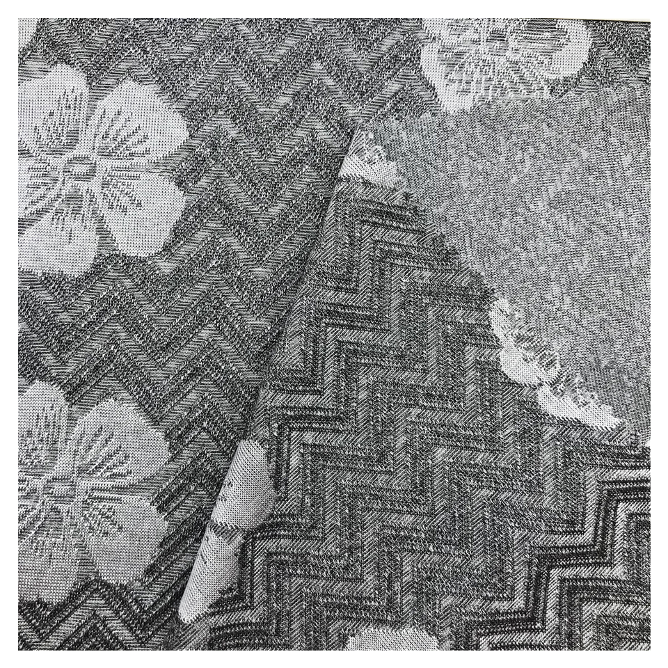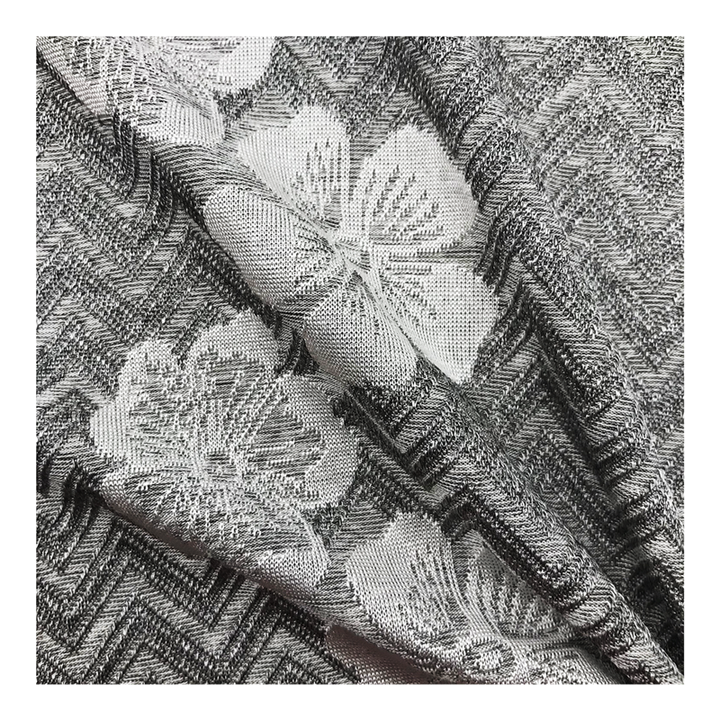 2022รูปแบบใหม่ผ้า Jacquard ถัก145gsm เส้นด้ายโลหะย้อมผ้ายืดโพลีเอสเตอร์สำหรับเสื้อผ้า
