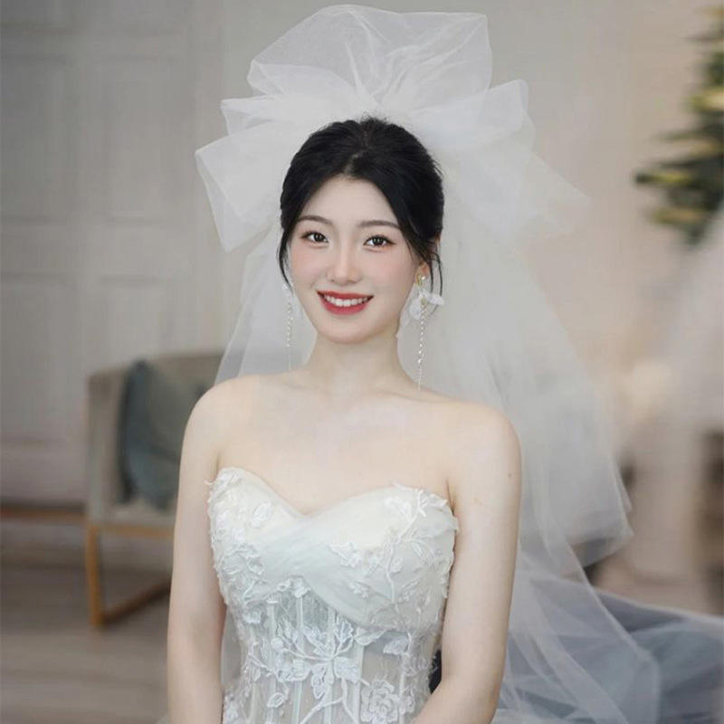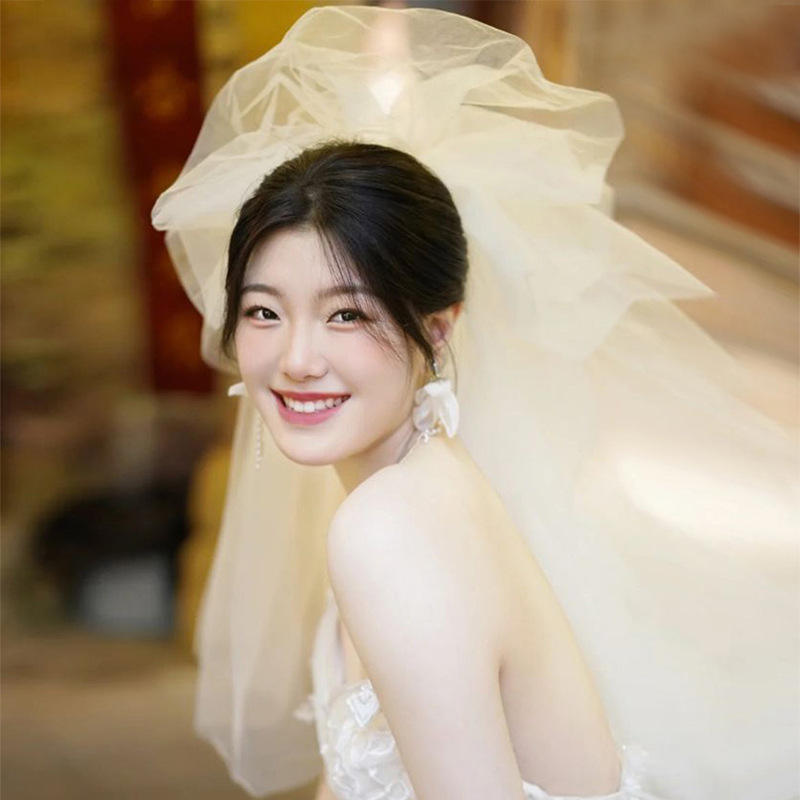 ชุดแต่งงานสีขาวสไตล์เกาหลีแบบใหม่ปี 2022 ผ้าคลุมหน้าเจ้าสาว โพลีเอสเตอร์ 100% ประดับลูกปัด ดีไซน์ฟูฟ่องดุจเมฆ สำหรับถ่ายภาพงานแต่งงาน