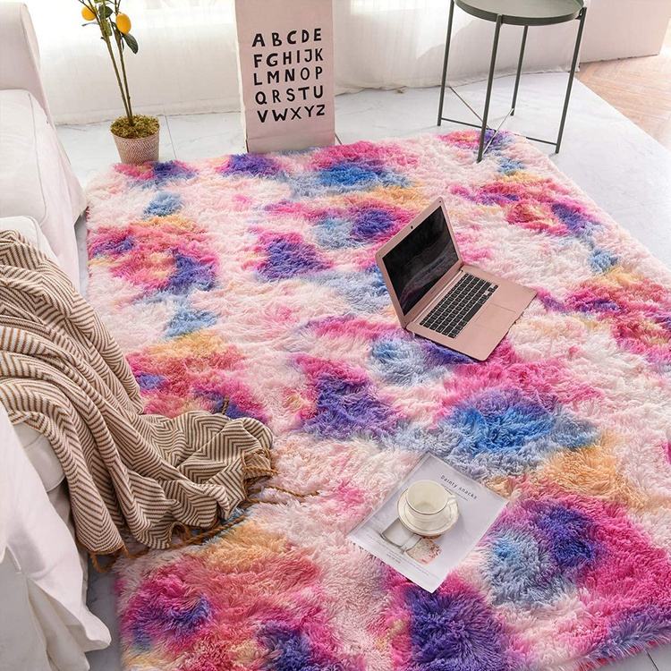 พรมมัดย้อมผมสีม่วงสีฟ้า,พรมปูพื้นทางเข้าข้างเตียงโซฟาผมยาวสไตล์ใหม่ปี2022