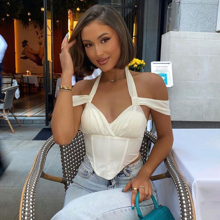 เสื้อกล้ามแฟชั่นฤดูร้อน-ใบไม้ร่วงปี 2022 คอวี แขนกุด สไตล์ลำลอง แต่งลูกไม้ เซ็กซี่ สายเดี่ยวเส้นเล็ก