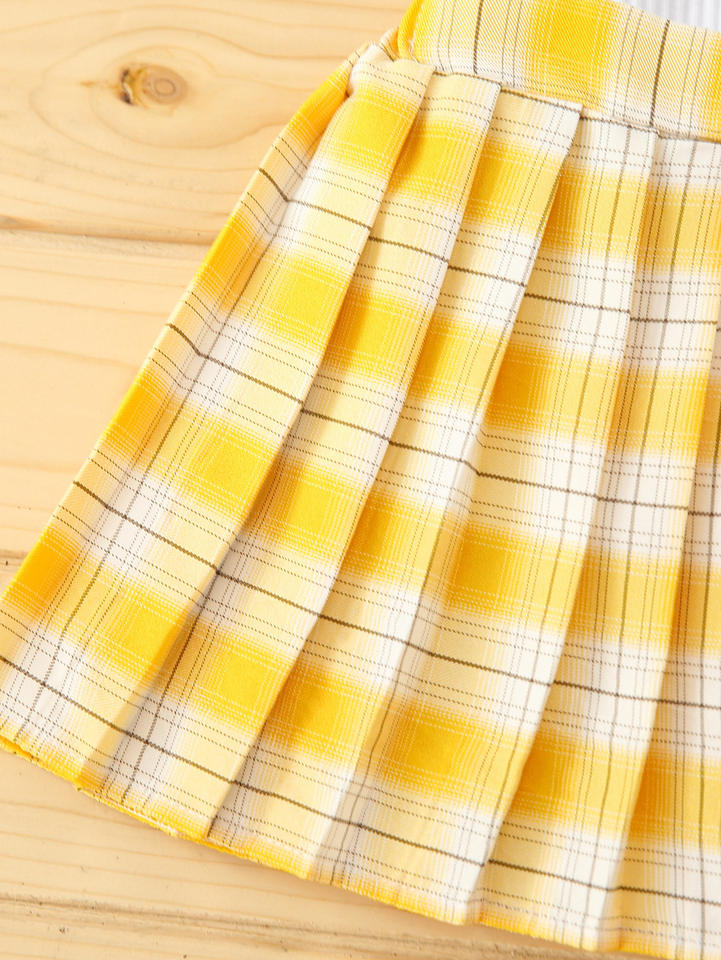 ชุดเสื้อผ้าเด็กฤดูร้อนปี 2022 เสื้อสีขาว กระโปรง ชุด 2 ชิ้น ชุดเด็กทารก ลายสก็อต