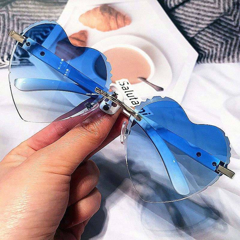 แว่นกันแดดทรงหัวใจไร้กรอบ ดีไซน์เพชร ตัดขอบสีฟ้าชมพูไล่เฉด แฟชั่นใหม่ล่าสุดปี 2022 สำหรับผู้หญิง