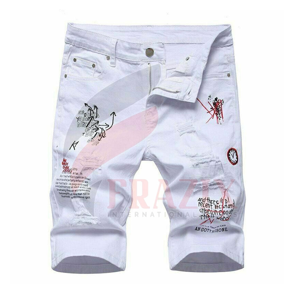 กางเกงยีนส์กางเกงขาสั้นชายดีไซน์พิมพ์ลาย