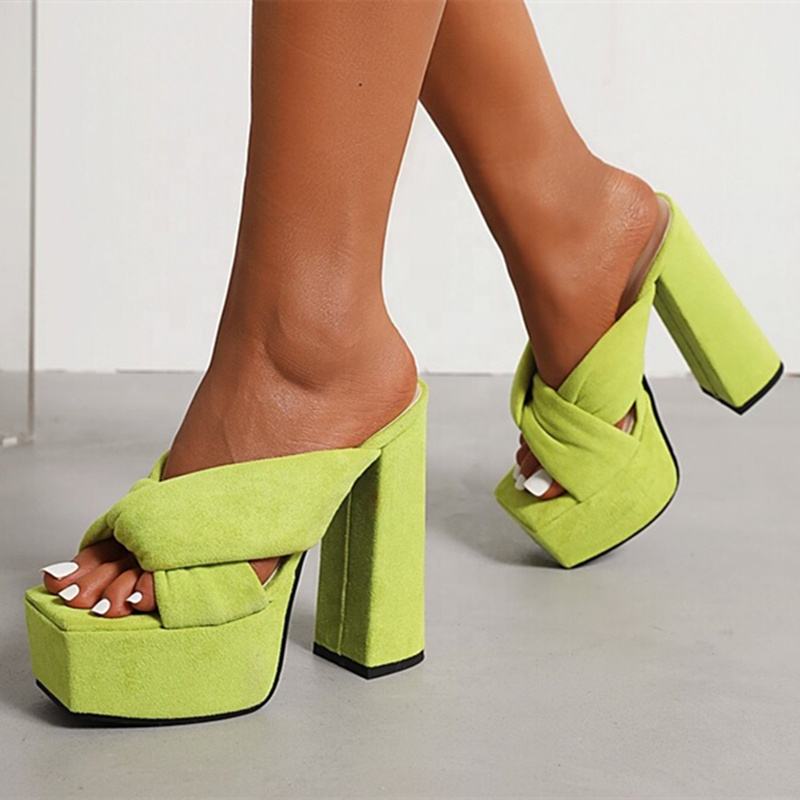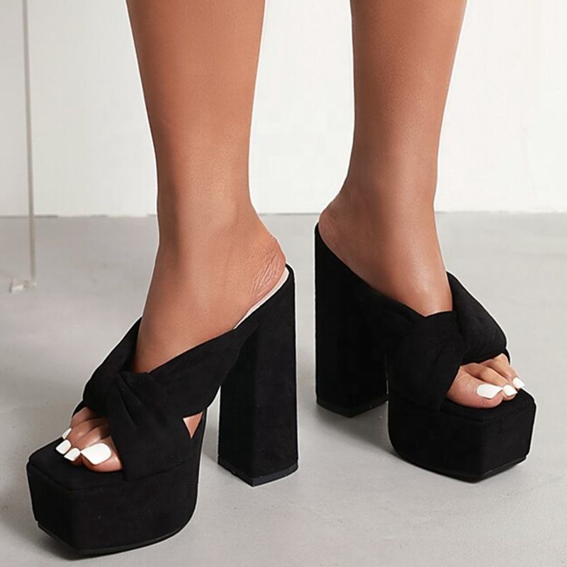 รองเท้าสวมแบบสลิปออนสำหรับผู้หญิง ปี 2022 พื้นหนา สายไขว้ ไซส์ 43 ส้นสูงแบบเปิด หัวเหลี่ยม หน้าผ้ากำมะหยี่ ลายเสือชีตาห์
