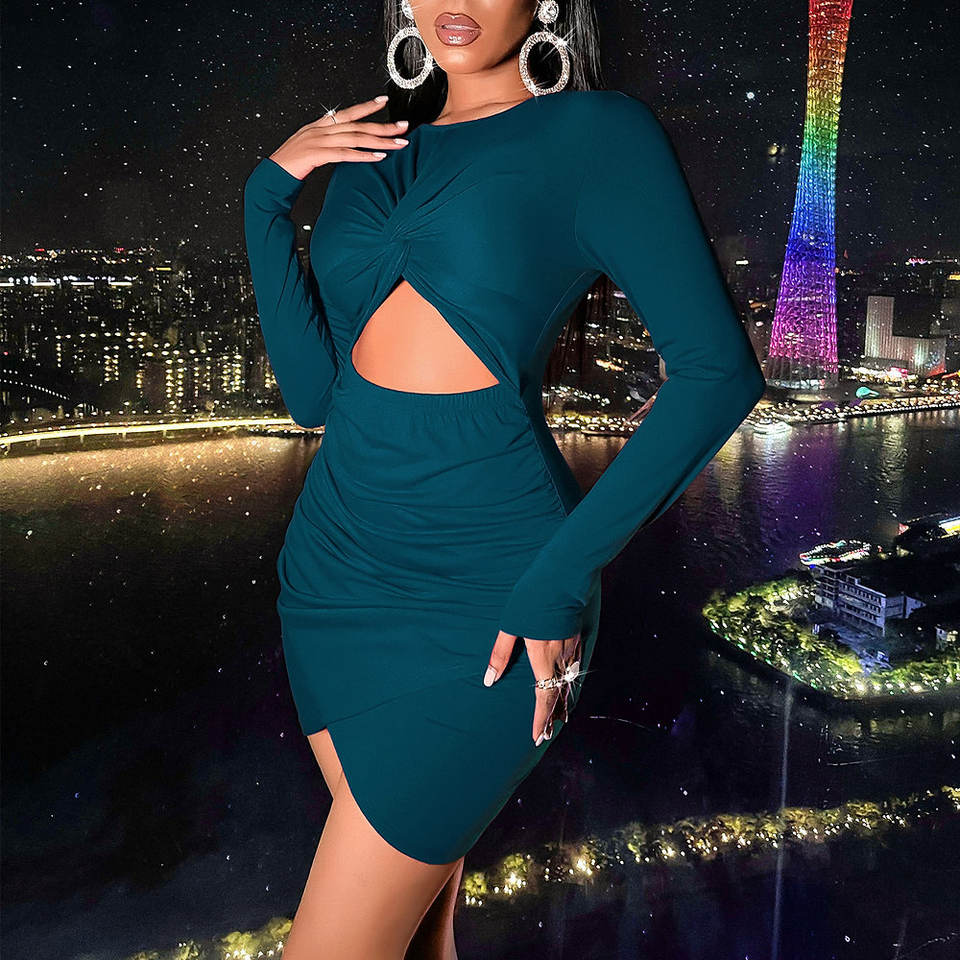 เดรสแฟชั่นสปริง 2022 ทรงสลิมลำลองสำหรับผู้หญิง กระโปรงสั้นทรงเอวสูง ยกสะโพก กระชับรูปร่าง เนื้อผ้าเจอร์ซีย์