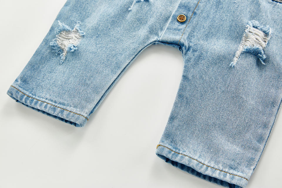 ชุดรอมเปอร์เด็กทารกฤดูใบไม้ผลิปี 2022 แบบติดกระดุมหน้าเดียว เสื้อผ้าเด็กผู้ชาย คอปกพับได้ ชุดจั๊มสูทเดนิมสำหรับเด็กผู้หญิง