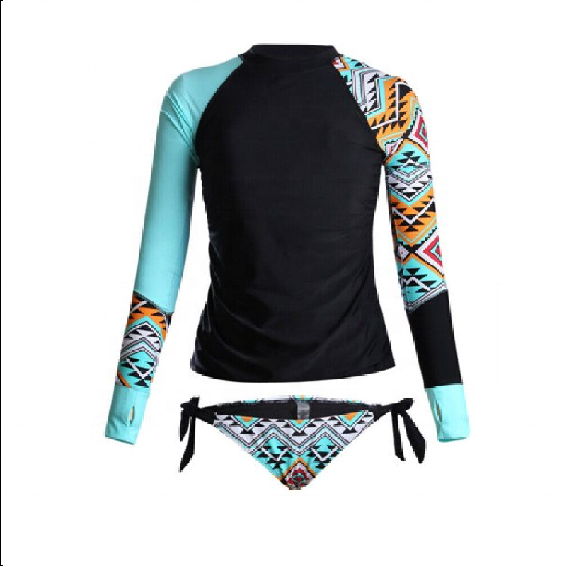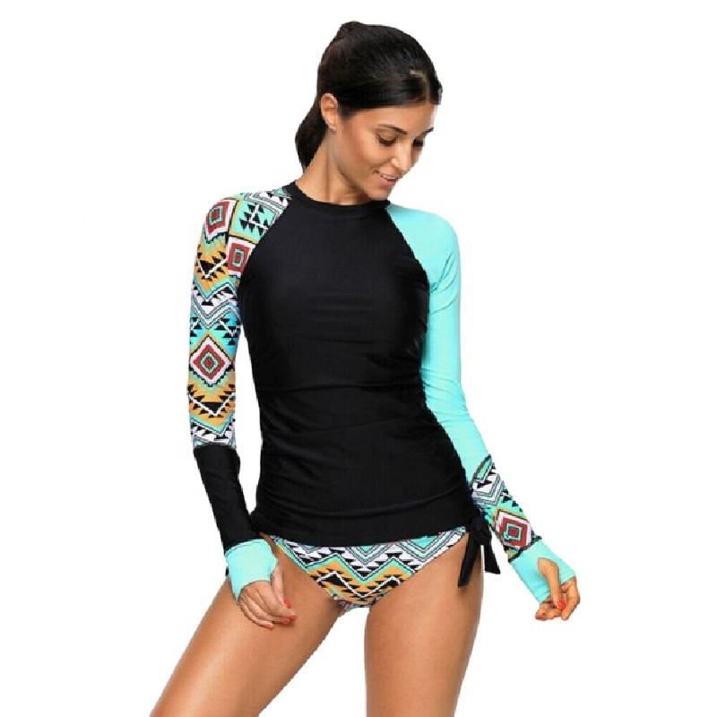 ชุดเสื้อ Rash Guard แบบสองชิ้นของผู้หญิงชุดป้องกันการผื่นคันแขนยาวระบายอากาศได้สำหรับฤดูร้อน2022