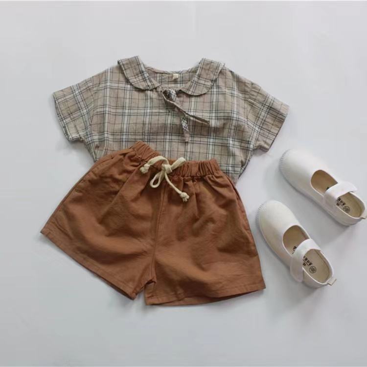 2022 ฤดูร้อนใหม่กางเกงขาสั้นผ้าฝ้ายลินินเด็กเกาหลีแบบหลวม