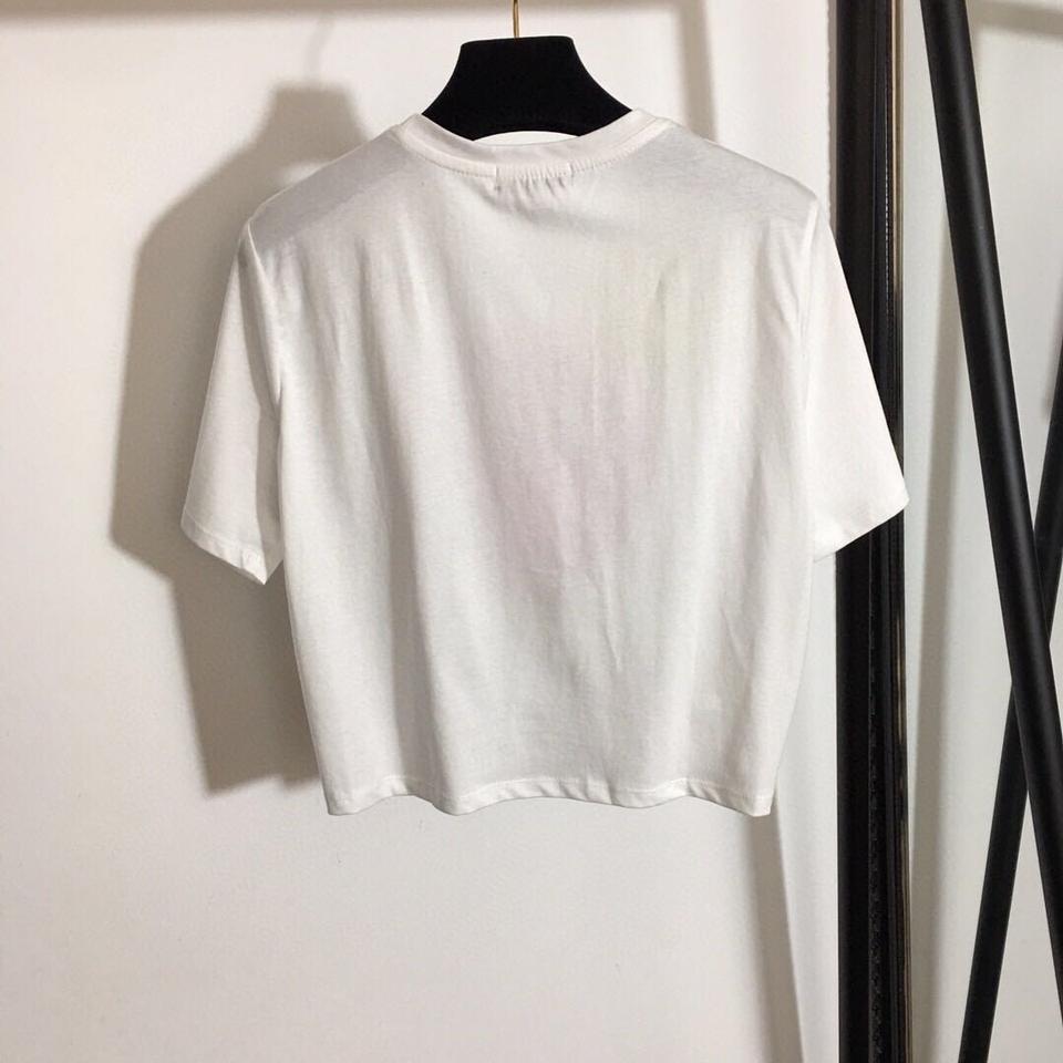 เสื้อยืดสั้นสำหรับผู้หญิง, ใหม่สำหรับฤดูร้อน2022เสื้อพิมพ์ลายตัวอักษรทำจากโลหะเข็มขนาดใหญ่ตกแต่งคอลเล็คชั่นเอวลำลองและอเนกประสงค์