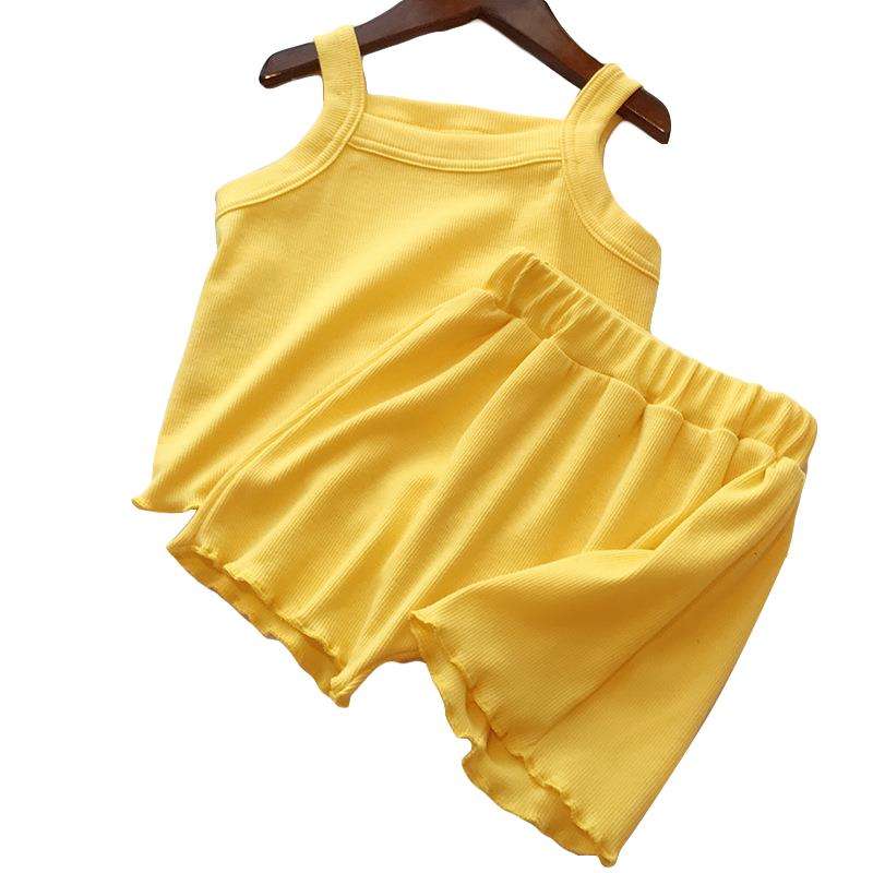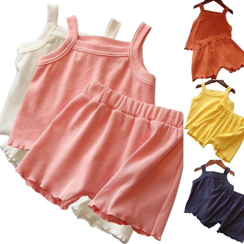 ชุดฤดูร้อนปี 2022 สำหรับเด็ก ชุดเสื้อกล้ามสีพื้นกับกางเกงขาสั้น ชุดเสื้อผ้าบูติกสำหรับเด็กผู้หญิง ชุดขาสั้นสำหรับเด็กผู้หญิงตัวเล็ก