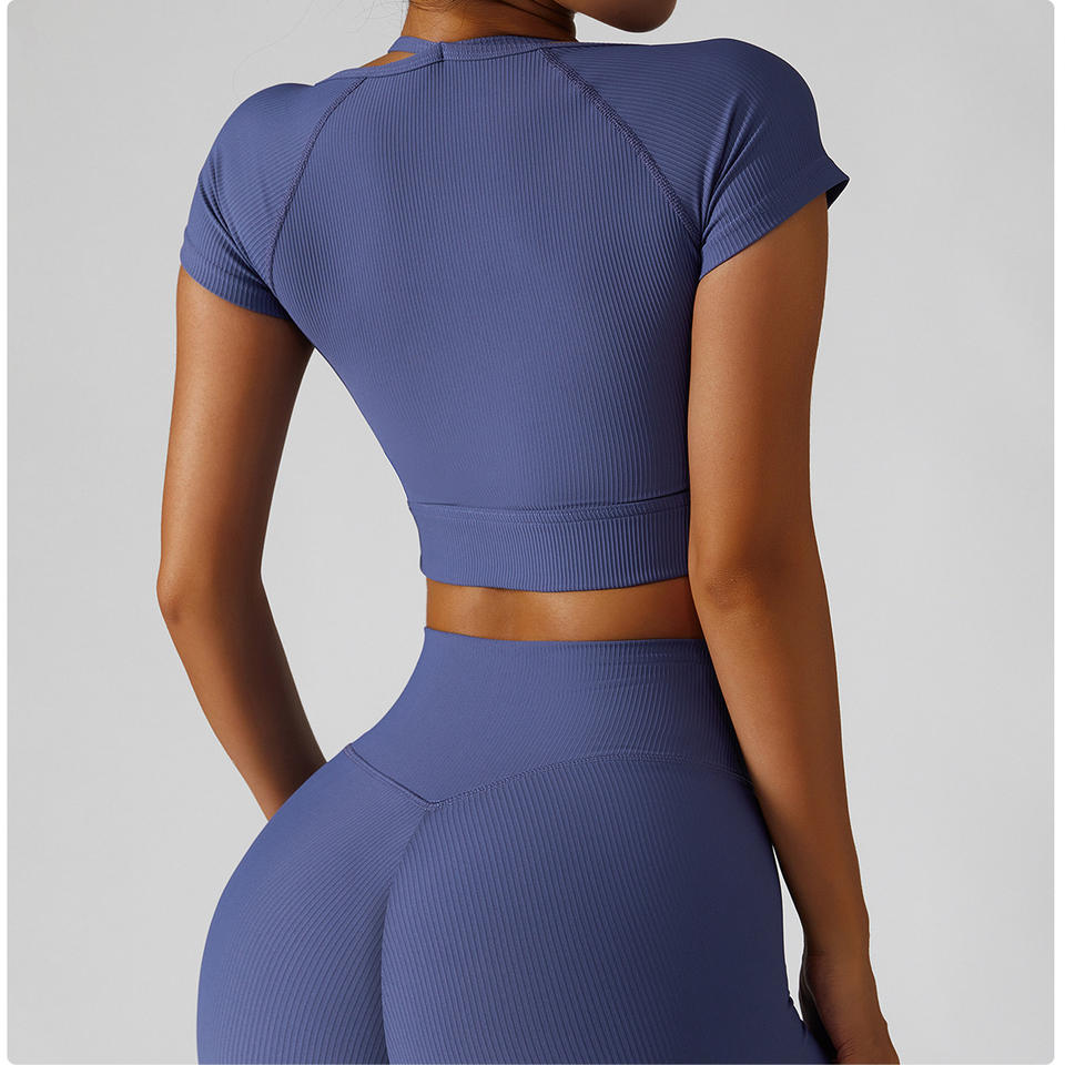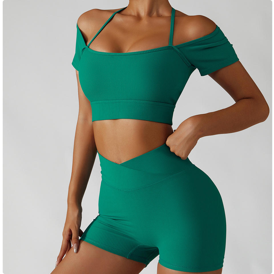 เสื้อยืดโยคะคล้องคอ x คล้องคอเซ็กซี่สำหรับผู้หญิง2022กางเกงขาสั้นออกกำลังกายคอวีตัดสั้นระบายอากาศน้ำหนักเบาเหมาะกับฤดูร้อน