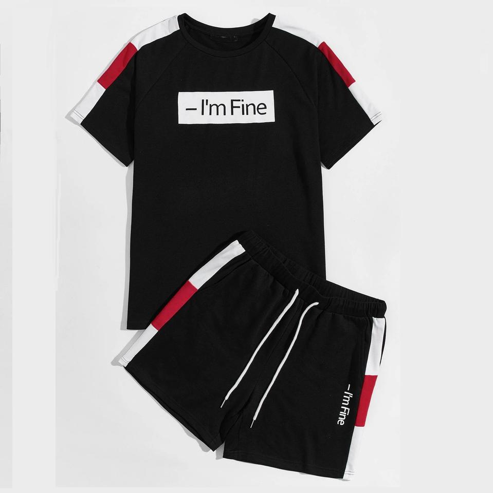 ชุดกีฬาลำลองผู้ชาย,เสื้อยืดแขนสั้นและกางเกงขาสั้นใส่ในฤดูร้อนมีกระเป๋าคละสีชุดกีฬาลำลองลายทาง2022
