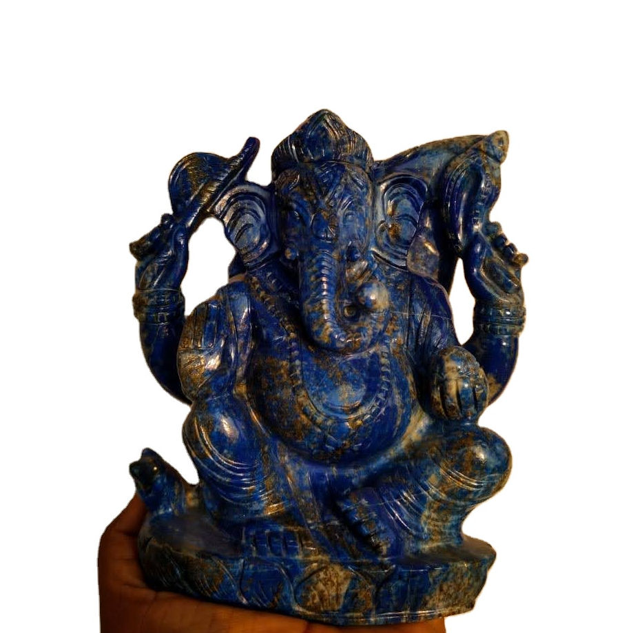 2022 Trending Home Decor Handcrafted Natural Lapis Lazuli Ganesha Carving Statue All Religious Semi-Precious Stone Crafts