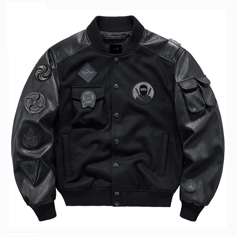 แจ็กเก็ตเบสบอลแขนยาวสำหรับผู้ชายแจ็กเก็ตเลตเทอร์แมนแบบเรียบของ2022ออกแบบได้ตามต้องการ