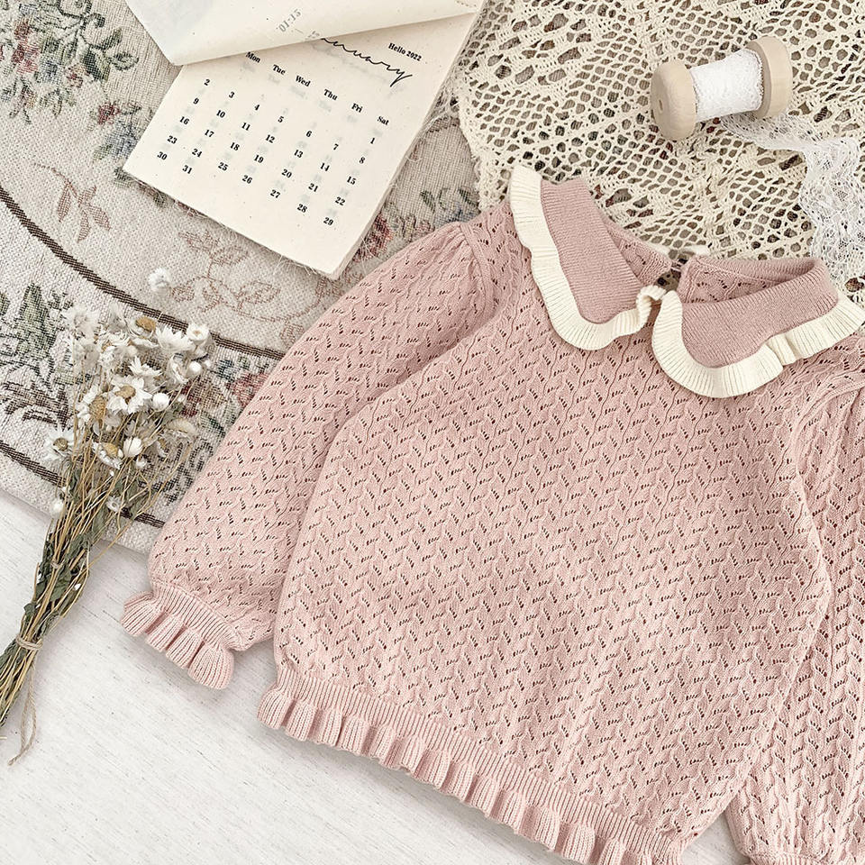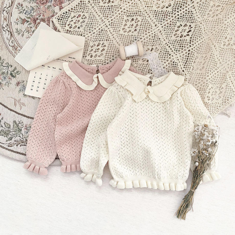 เสื้อสเวตเตอร์เด็กผู้หญิงสำหรับฤดูหนาวปี 2022 แบบถักสไตล์วินเทจ เสื้อผ้าเด็กขายส่ง 025AS22168