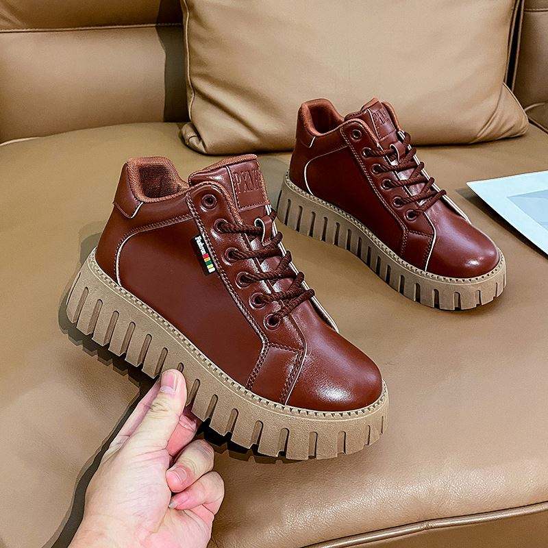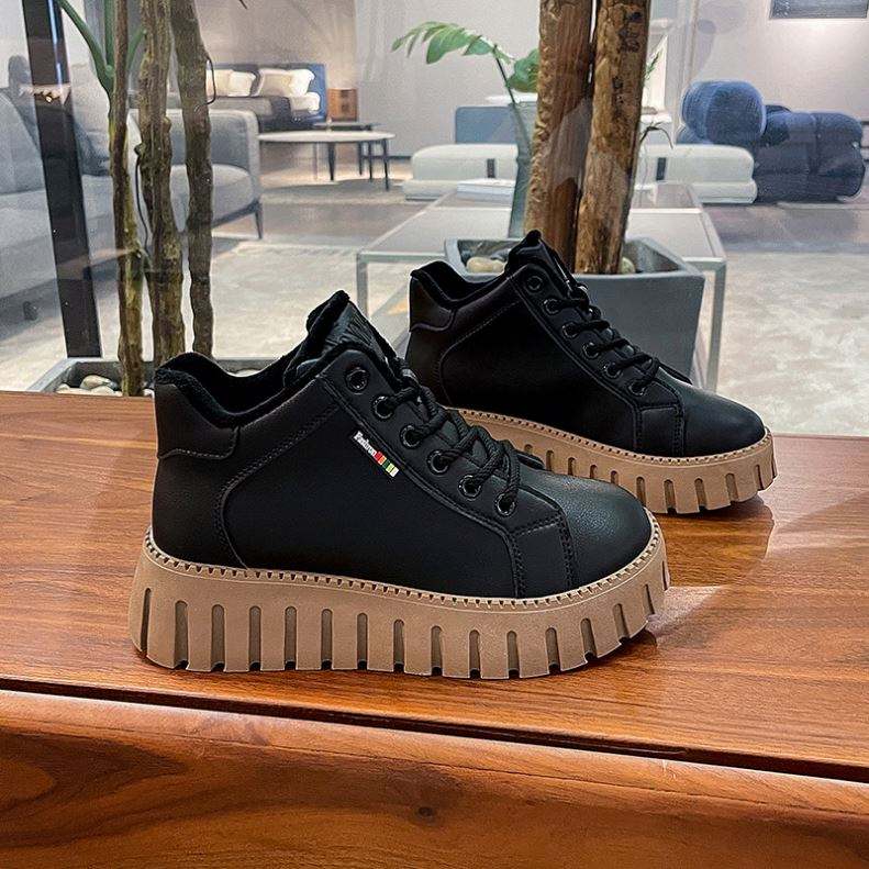 รองเท้าผู้หญิงสีขาวหนังกำมะหยี่แบบใหม่ประจำฤดูหนาวปี 2022 รองเท้าลำลองพื้นหนาสำหรับผู้หญิง